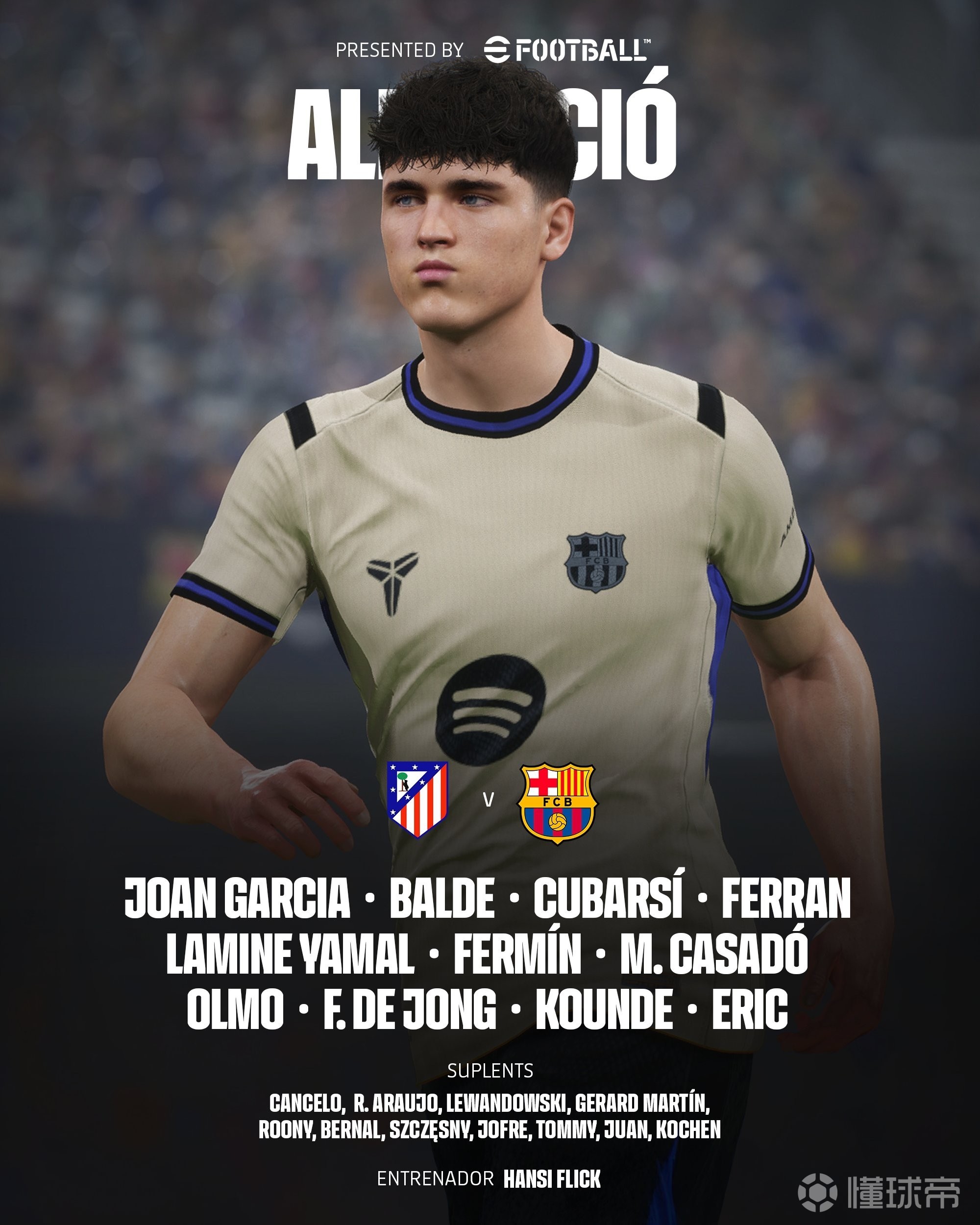 巴塞罗那首发:13-霍安-加西亚、3-巴尔德、24-埃里克-加西亚、5-库巴西、23-孔德、16-费尔明、21-德容、17-卡萨多、20-奥尔莫、7-费兰、10-亚马尔