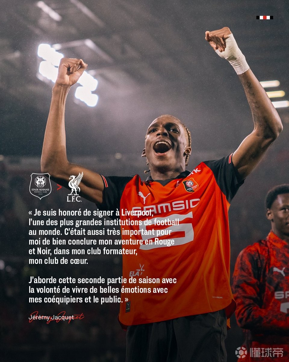 雅凯:我非常荣幸加盟利物浦,下半赛季将全力助雷恩圆满收官