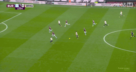 第25分钟,迪乌夫传中,卡斯特利亚诺斯头槌破门,伯恩利0-2西汉姆联