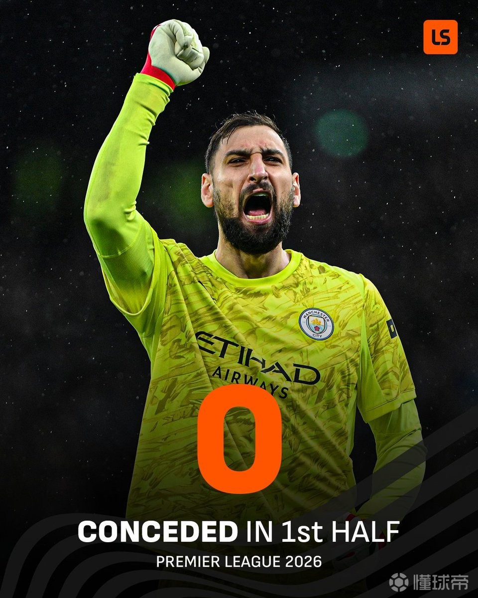至此,曼城进入2026年以来在英超上半场一球未丢,他们是唯一做到这一点的球队。