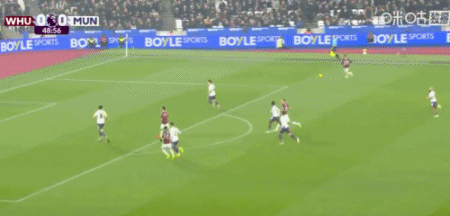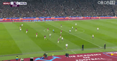 第50分钟,绍切克门前插上抢点推射破门,西汉姆联1-0曼联