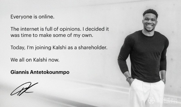 将把天赋带到…字母哥自宣入股体育竞猜平台Kalshi Sports