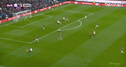 第25分钟,迪乌夫传中,卡斯特利亚诺斯头槌破门,伯恩利0-2西汉姆联