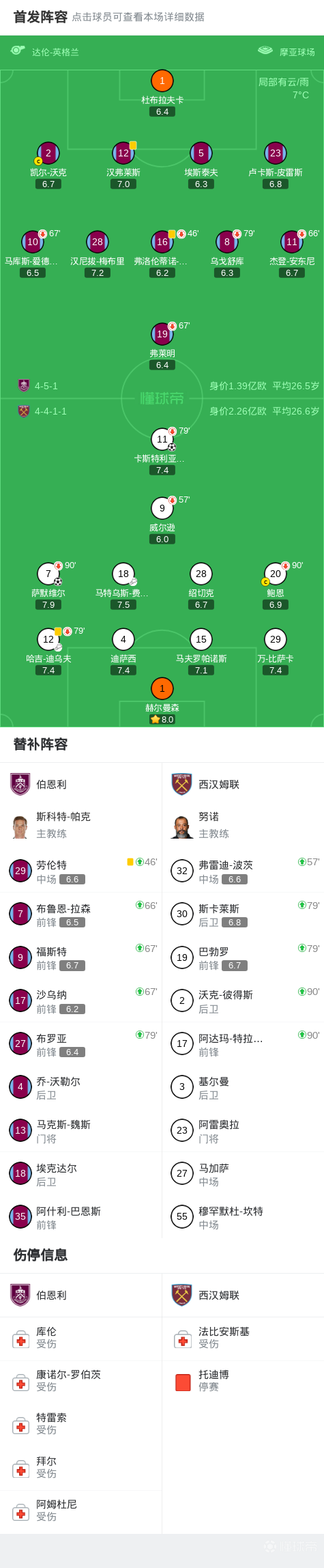 北京时间2月7日英格兰足球顶级联赛 联赛 第25轮,伯恩利主场对阵西汉姆联。上半场西汉姆联萨默维尔破门首开记录,随后卡斯特利亚诺斯头槌破门扩大领先优势。最终比分伯恩利 0-2 西汉姆联。